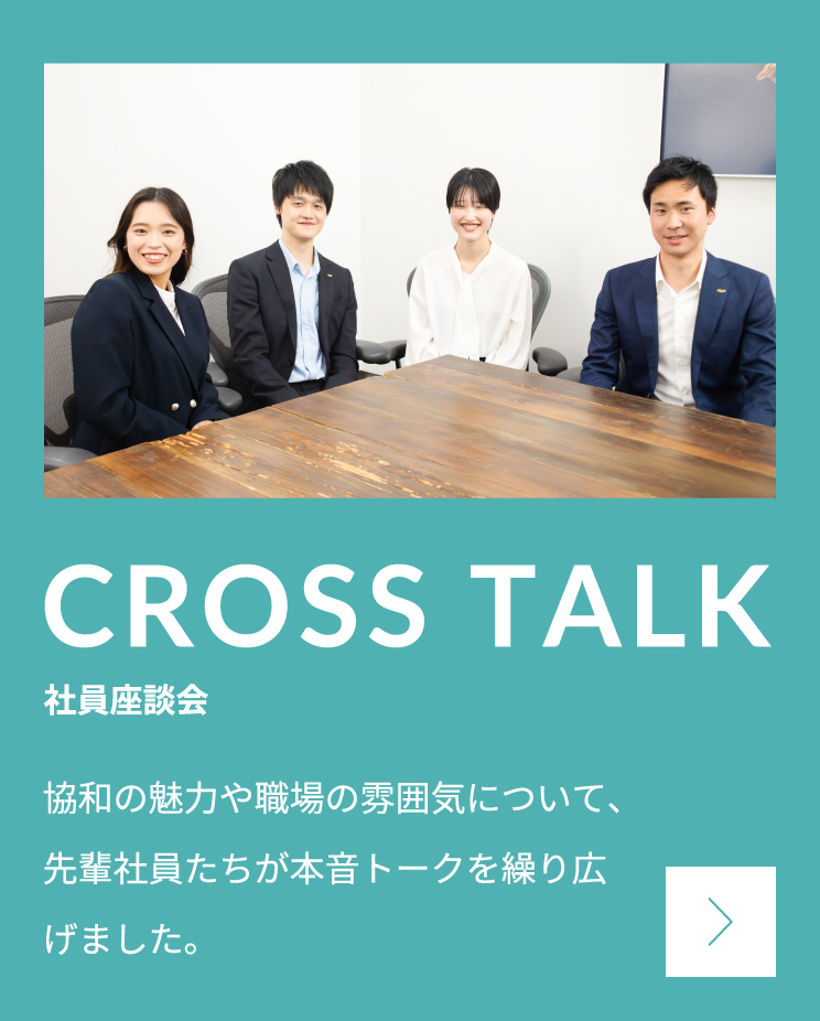 中でも協和は、福利厚生がとても充実している点が印象的でした。家賃補助など働きやすさを支える制度が整っていて、一人暮らしを始める私には大きな安心材料でした。